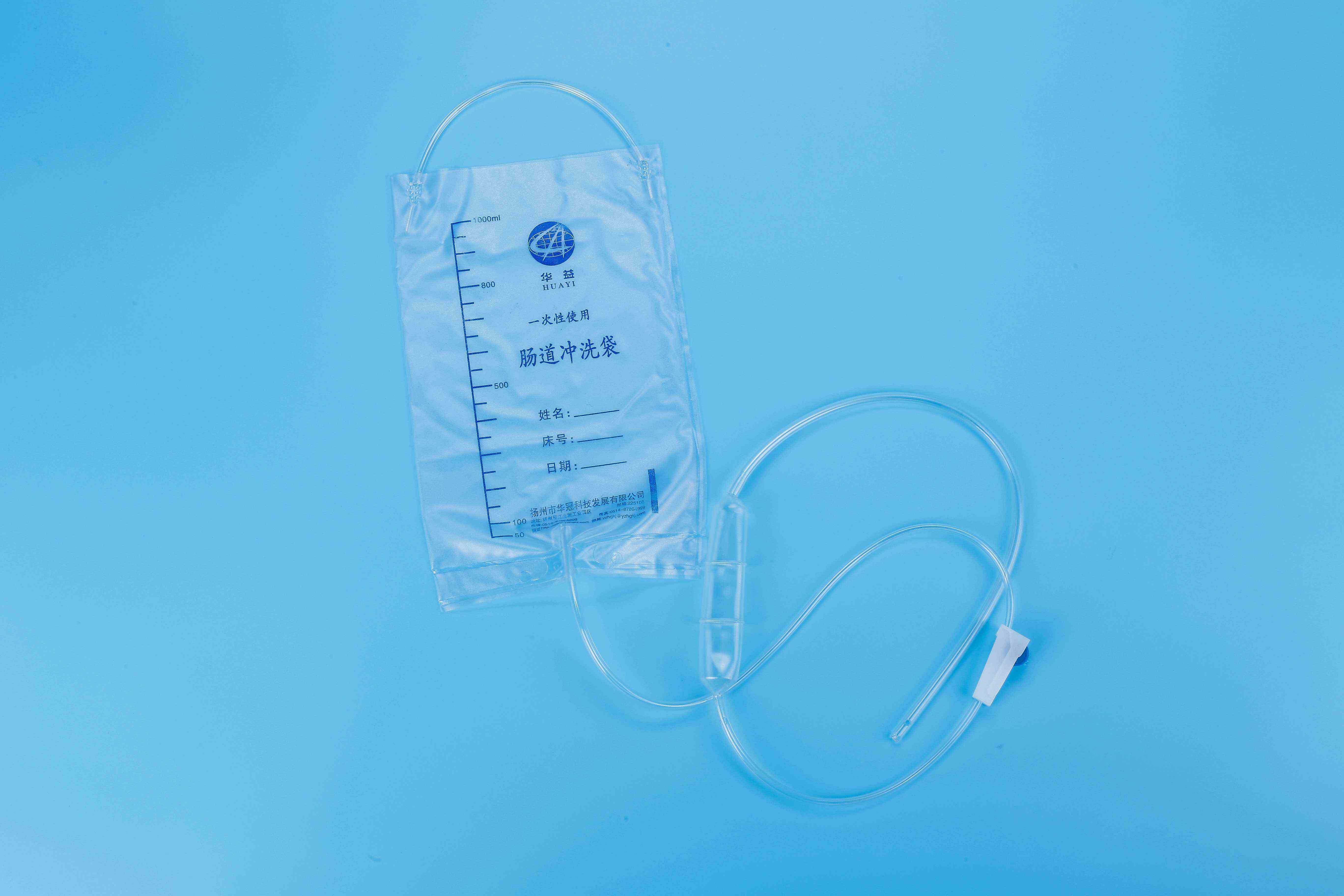 產(chǎn)品性能及組成:一次性使用腸道沖洗袋采用軟聚氯乙烯制成,由儲液袋、吊耳、導(dǎo)管、調(diào)節(jié)器、加壓囊、肛門管組成,其中加壓囊和調(diào)節(jié)器為選用配件;儲液袋的長為240±20MM,寬為140±20MM,導(dǎo)管外徑為5.7±0.8MM,長度為500-200MM,加壓囊的外徑為30±5MM,長度為100—160MM,肛門管的外徑為6.8±1.0MM,長為280-1000MM